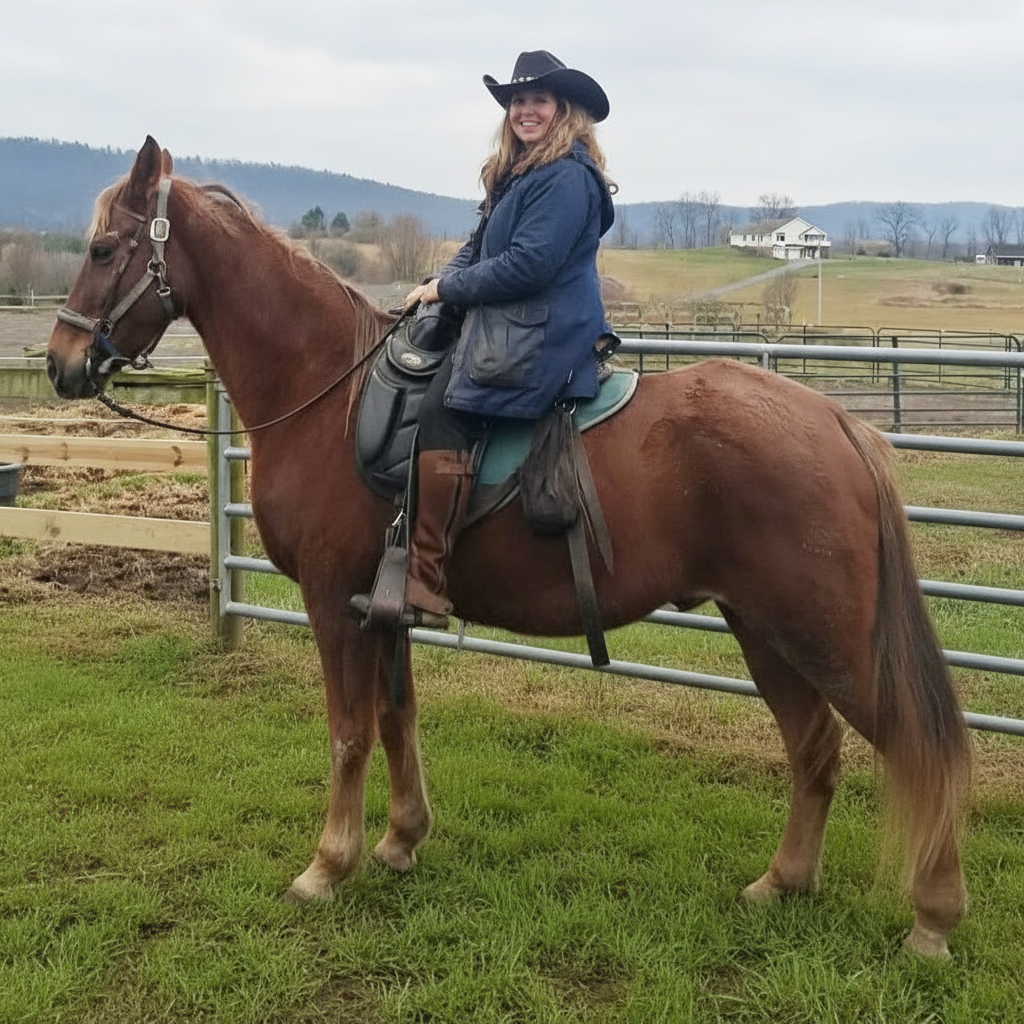 Glory is a Tennessee Walker, very eager-to-please and smooth to ride. Her riders absolutely love her because she is not easy to spook, respects her commmands and does not buck, rear or bolt. Glory had two babies beore she came to us, and was not even trained to ride. Within just 30 days she was one of our dependable trail horses. Glory is one of our horses that anyone can ride. Glory passed in May 2022 due to a broken leg from a ground hog hole at pasture.