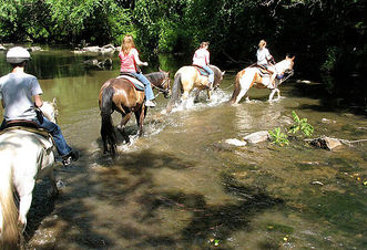Wildfire Ranch is proud to be one of the few remaining stables in all of Pennsylvania offering public guided trail rides. Our horses are a wonderful mix of Tennessee Walkers, Missouri Fox Trotters and Rocky Mountain saddle horses, along with Arabian, Quarterhorse paint, Morgan/Standardbred and even a stunning Friesian.Our horses are gentle enough for both children and adult beginner riders. Our age limit is 12 years for children to ride independently. We offer a 'Little Buddy' Saddle for children 11 years and under to piggyback behind one of our trail guides at a reduced rate. (Please note that the Wildfire staff reserves the right to determine whether or not a child is confident-enough to piggyback on the horse for safety reasons.)During your horseback adventure you will be surrounded by vivid green ferns and pine trees. You may be visited by wild turkey and deer. Your senses will absorb the sounds of a rushing mountain stream and the cries of a hawk overhead. This only begins to cover the beauty of our Pennsylvania Bald Eagle State Forest.We are pleased to offer trail-rides that allow you to trot and even canter your horse during the course of the ride (rather than walking only).